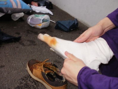 僕はもう足に肉刺が出来て、休憩所でつぶすのに躍起になってました。